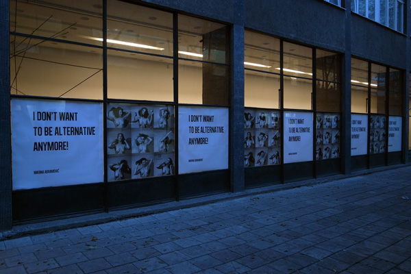Projekty artystyczno-modowe nasuwają pytania nie tyle o motywacje artystów (bo te najczęściej są znane), ile o problematyczny związek rynku mody i sztuki. W przewrotny sposób kwestię tę stawia Karol Radziszewski w projekcie zrealizowanym w witrynie Muzeum Sztuki Nowoczesnej. Mottem pracy jest wypowiedź Mariny Abramović „I don’t want to be alternative anymore!” z dokumentalnego filmu „Marina Abramović: Artystka obecna” (Marina Abramovic: The Artist Is Present, reż. M. Akers, J. Dupre 2012). Film skontruowany jest wokół trwającego trzy miesiące performansu Abramovic, stanowiącego część retrospektywy artystki w nowojorskiej MoMie (2010). Siedem godzin dziennie przez sześć dni w tygodniu Abramović siedziała bez ruchu w tej samej pozycji. Nic się nie zmieniało, prócz siadających naprzeciwko artystki widzów i kolorów jej sukni – niebieska w marcu, czerwona w kwietniu, biała w maju (na zakończenie performansu). Suknie zaprojektował Riccardo Tisci, dyrektor artystyczny domu mody Givenchy. Koncern LVMH (do którego należą m.in. marki Givenchy i Louis Vuitton) zapłacił za galę wieńczącą retrospektywną wystawę Mariny Abramović w MoMie oraz za kurtkę artystki uszytą ze skóry 101 węży (skojarzenie z pragnieniem Cruelli De Mon posiadania futra ze 101 dalmatyńczyków jest nieprzypadkowe), nawiązującą do performansu Abramović Golden dragon head (1992).
