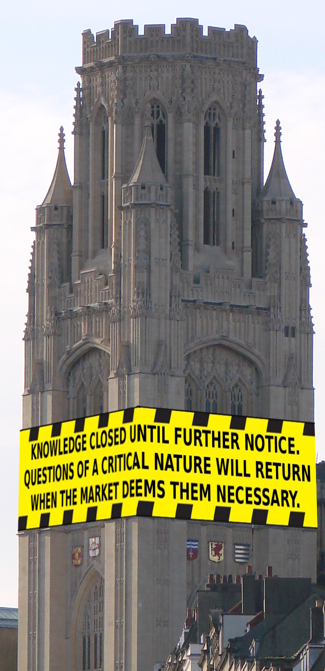 We are at a moment of inactivity at UoB and HE. Words that were articulated by various alliances in our University – of different student groups, academic staff with students, junior academics with senior academics, academics with support staff – to communicate common causes and solidarity of efforts now seem uselessly empty and static. These words communicated an anti-austerity agenda that positioned itself against the privatisation of education, against policies continuing to institute worker precarity as their modus operandi, against the commodification of education where students are treated more as customers than partners in education, against bullish attacks by senior management on the rights and working conditions of workers down the ‘food chain’. They have failed to result in any concrete action; in fact, they are dismissed and denounced each day through our continual failure to consider these words literally and do something with them.