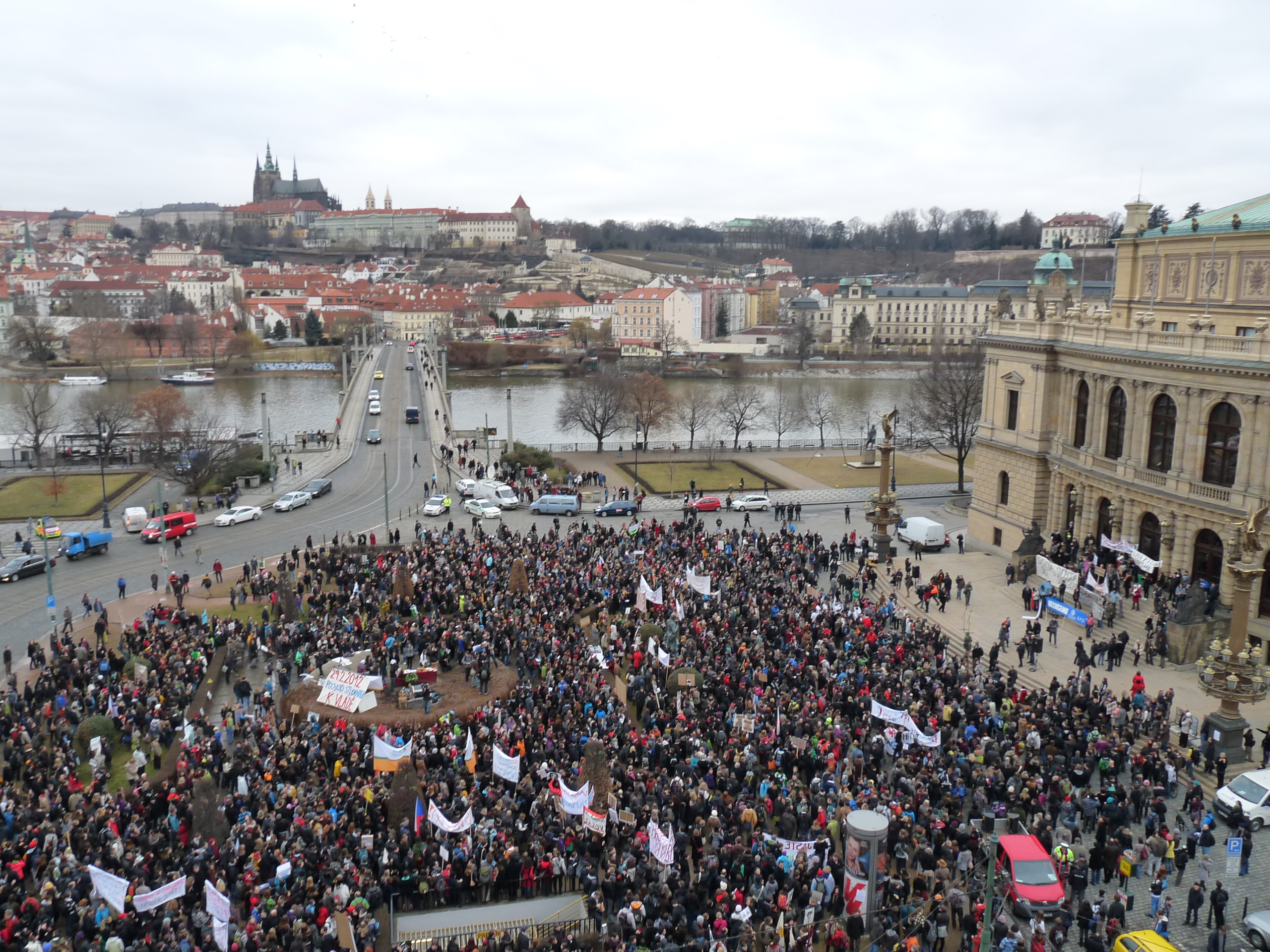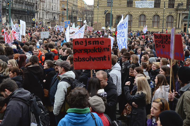 Jak wspominałam, w manifestacjach wzięła udział ogromna ilość ludzi, również tych nie związanych bezpośrednio z uniwersytetami, którzy chcieli pokazać swoje niezadowolenie z sytuacji politycznej w Czechach. Próba jej scharakteryzowania jest zadaniem niewdzięcznym. W dużym uproszczeniu można napisać, że pasmo skandali wśród politycznych partii, afer związanych z korupcją, złym gospodarowaniem środkami z unijnych dotacji, nepotyzmem wytworzyło w czeskim społeczeństwie atmosferę rosnącego rozczarowania, niezadowolenia i nieufności wobec wszystkich chyba uczestników życia polityczego. Powszechna krytyczna opinia wobec poczynań władz w różnych obszarach niewątpliwie sprzyjała solidarności z protestującymi środowiskami akademickimi.